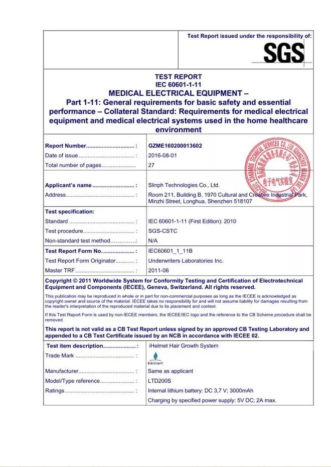 IEC60825,是激光产品国际标准检验证书,i黑密头盔产品使用的650纳米5毫瓦的激光是3R类激光,只有符合这个标准的激光生发产品才能起到防脱生发的作用,没有通过这个标准测试的产品,说明不是3R类激光,不仅没有促进头发生长的作用,可能会损害毛囊甚至更严重的不良作用。
