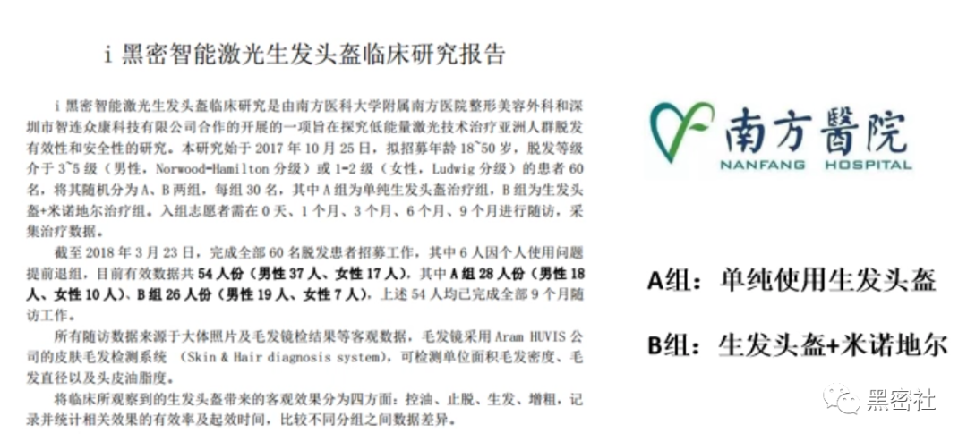 10、i黑密智能激光生发头盔的生发效果在国内有临床研究数据作支撑。