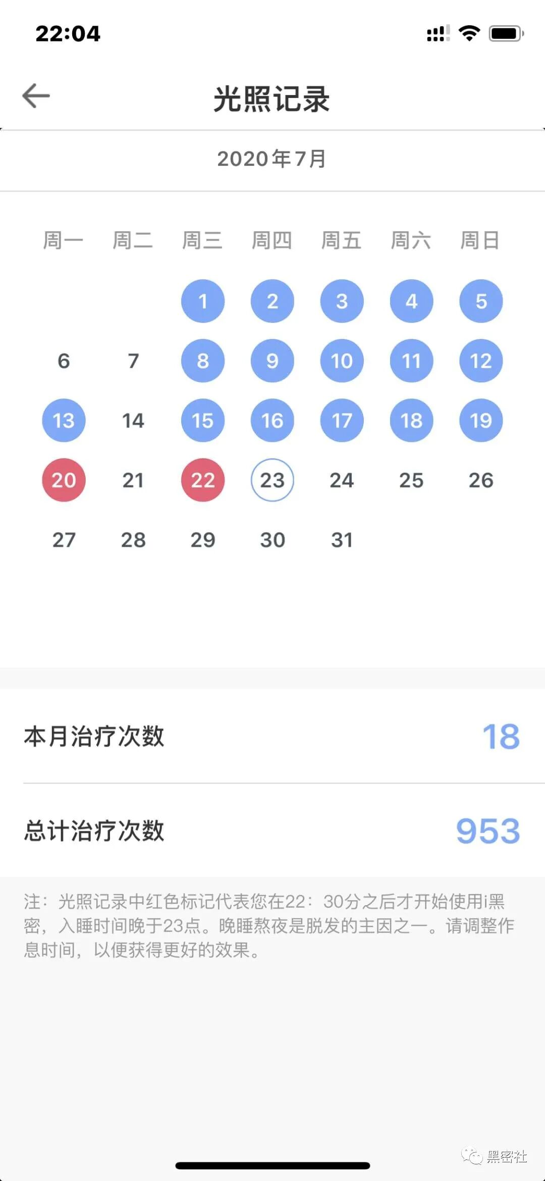 当用户晒出了自己的光照记录截图时,团队所有人都惊了,可以看到已经光照打卡953次。怀着惊讶与好奇,我们询问了用户长期坚持使用i黑密智能激光生发头盔的原因。
